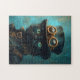 Eine schöne Abbildung mit einer schwarzen Katze, die in einem Steampunk-inspiriert Outfit gekleidet ist, inklusive einem Hut und einer Brille, die Charme und Kreativität ausstrahlt.