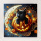 Schwarze Katze, Jack-o-Laterne und gemäßigter Mond