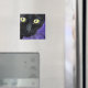 Feline Kühlschrankmagnet mit einer Darstellung von Lisa Marie Robinson. Diese Aquarelldarstellung einer schwarzen Katze mit einem hübschen Gesichtsausdruck und gelben Augen vor einem lila Hintergrund ist perfekt für jeden Katzenliebhaber. Kunstwerk © Lisa Marie Robinson. Alle Rechte vorbehalten.