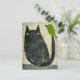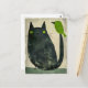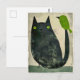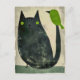 Schwarze Katze mit grünem Vogel auf Schwanz Postkarte