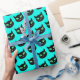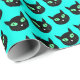 Schwarze Katze mit grünen Augen auf türkisblaues Wrapping Paper