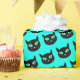 Schwarze Katze mit grünen Augen auf türkisblau Geschenkpapier