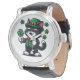 Schwarze Katze mit Lucky Klee Armbanduhr