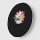 Schwarze Katze mit psychedelischer Blume Oversized Große Wanduhr