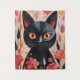 Schwarze Katze mit rosa Blume Wandteppich