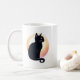 Schwarze Katze sitzend Kaffeetasse