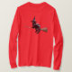 Eine schwarze Katze ist wie eine Hexe gekleidet und fliegt einen Besen.
