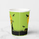 Fledermäuse am Himmel fliegen über einer grün-mit Augen schwarzen Katze und leerten Jack o' Laterne auf diesen Halloween-Papiertassen. PASSENDE Artikel in unserer Sammlung.
