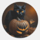 Schwarze Katze und Jack-O-Laterne Runder Aufkleber
