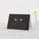 Schwarze Katze mit orange glühenden Augen. Unterer Bart kräuselt sich in das Wort, "Boo!" Innerhalb liest, "glückliches Halloween!"
