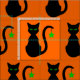 Ein Silhouette-Cartoon einer schwarzen Katze mit grünen Augen gegen Orange (die Hintergrundfarbe kann geändert werden). Ein grüner Stern hängt vom Schachtelhalm.