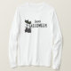 Glückliches Halloween mit zwei schwarzen Katzen, die das "H" im Wort Halloween darstellen.