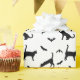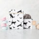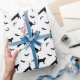Schwarze Katzen und Fledermäuse auf weißem Hallowe Geschenkpapier