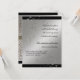 Für Ihre Empfang-Einladung ist dies eine wirklich elegante Hochzeitskollektion mit einem kompletten Sortiment an Einladungen und passenden Produkten. Es ist wirklich würdig für eine Schwarze Krawatte Feier! Die Einladung wird hier auf metallischem Champagner präsentiert und strahlt ein elegantes silbernes Aussehen aus. Für eine schöne Touch wählen Sie den passenden Einladungsumschlag des gleichen Designs aus. Dies ist ein Kunstwerk, das von Audrey Jeanne Roberts erstellt wurde, gemischt mit Vintagen geätzten Elementen, die zu einem "silbernen Filigree" erstellt wurden. Der schwarze Rahmen kann in jede gewünschte Farbe geändert werden. Melden Sie uns einfach und wir werden uns freuen, jede Farbe, die Sie für Ihre Feier verwenden, zu vereinbaren. PAPIERAUSWAHL:Mit der Auswahl der Champagner- oder Metalleispapiere wird das silberne Aussehen leichter. Ein tieferes und reicheres Silber mit den Silberpapieren. HINWEIS: Dies ist ein flaches, bedrucktes Design mit dem Aussehen dreidimensionaler Aspekte. Es gibt keine erhöhten Schichten oder Gold oder Silber im Design.