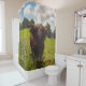 Schwarze Kuh Weide grünes Feld Sonnenlicht Duschvorhang