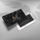 Maskuliner schwarzer Marmorhintergrund mit Doppelmonogramm vorne, ganz in elegantem Serif-Schriftart und schwarzem Hintergrund mit persönlichen Details in Serif-Schriftart auf der Rückseite