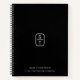 Ein modernes personalisiertes Business Notizbuch für jeden. Eine einfache und berufliche Art, Ihr Unternehmen vorzustellen. Personalisieren Sie Ihre Text- und Monogramm-Initialen, um Ihr eigenes, elegantes, schwarz-weißes Businessnotebook zu erstellen. Mit einem eigenen Farbhintergrund oder Schriftart können Sie noch weiter individualisieren.