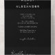 Herzlich willkommen in unserem Black Modern Script Wedding All In One Invitation Design, wo Moderne Minimalismus auf die Kunst der Kalligraphie trifft. Diese kuratierte Ästhetik bringt einen Hauch von Raffinesse zu Ihrem besonderen Tag - mit einer Drehung von boho, lässigem Charme. Die Kombination aus einfacher Typografie und einem stilvollen Script-Schriftart verleiht Ihrer Hochzeit eine einzigartige Persönlichkeit. Dieses klassische Design bietet einen zeitlosen, polierten Look, der perfekt für Frühjahr-, Sommer-, Herbst- oder Winterhochzeiten ist. Eine schlichte Palette von schwarzen Kulissen und weißem Text schafft die perfekte neutrale Kulisse für Ihre Feier. Machen Sie Ihre Hochzeit wirklich elegant mit unserer schönen, modernen Skriptkollektion. Wie bei allen unseren Designs, wenn Sie Fragen oder besondere Wünsche haben, frag einfach.
