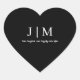 Schwarze Monogramm-Gastgeschenk Hochzeit Herz-Aufkleber