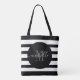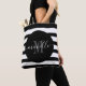 Black Monogram Script Calligraphy Modern Strip Tote Bag