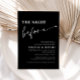 Das "Modern Minimalistisch Black The Night Before Probe Dinner Invitation" verbindet zeitgenössisches Design mit eleganter Einfachheit. Mit einer schwarzen Kulisse Set diese Einladung einen ausgeklügelten Ton für die Ansammlung vor der Hochzeit. Sein minimalistischer Ansatz, geprägt von klaren Linien und unterbewerteter Typografie, gewährleistet eine raffinierte Ästhetik, die das Wesen des Ereignisses erfasst. Ideal für diejenigen, die eine schicke und stilvolle Einladung zum Set der Bühne für ein unvergessliches Probe-Dinner suchen.
