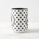 Diese Tasse zeigt ein Schwarz-Punkte-Muster auf weißem Hintergrund mit einem gerahmten, benutzerdefinierten Monogramm auf blassrosa Hintergrund. Klicken Sie auf Vorlage personalisieren, um das Monogramm einfach zu personalisieren und die Farben, den Schriftart und, falls gewünscht, den zusätzlichen Text anzupassen.