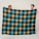 Ein Retro-farbenfroh gestaltetes Fleece-Kegeltuch in Blau, Orange und Schwarz-Quadrat-Muster