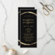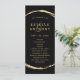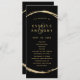 Dieses Hochzeitsprogramm umfasst ein goldfarbenes Imitat mit einem eleganten Ampersand und einer einfachen Kalligraphie mit schwarzem Hintergrund.