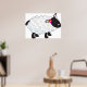 Ein schwarz gedecktes Schaf mit viel Weißwolle und einer Blume im Haar. Dieses Design sieht wirklich effektiv aus auf diesem Poster