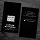 Schwarz oder benutzerdefiniert, modernes, berufliches, vertikales Visitenkartendesign mit Vorlagenfeldern für Name, Firmenname/Firmentitel, Logo (Foto oder andere Grafik) und Kontaktinformationen einschließlich Social Media Icons. Ändern Sie die Hintergrundfarbe, verschieben und verändern Sie Elemente mit dem Anpassungstool.