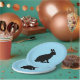 Schwarze Silhouette sitzend Kaninchen auf hellblau Pappteller