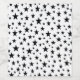 Abstrakte Kunst aus verschiedenen Größen schwarzer Sterne vor weißem Hintergrund.