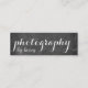 Die perfekten Geschäftskarten für irgendwie berufliches sind nach rechts hier! Diese Visitenkarten kennzeichnen einen schwarzen Tafelarthintergrund, auf der Front und Rückseite jeder Karte. Der Text wird im Weiß gedruckt. Diese Karten sind als Karten für ein Fotografiegeschäft entworfen, aber aller Text ist völlig kundengerecht. Sie können ihn zum Anzug ändern, was Geschäft Sie haben. Die Textboxen, zum Ihrer Informationen einzugeben sind auf der Spalte auf der rechten Seite der Webseite. Diese Geschäftskarten kennzeichnen auch moderne Typografie, aber, wenn Sie es vorziehen, den Schriftart zu ändern, klicken "besonders anfertigen es" Knopf an, und Zazzle erlaubt Ihnen leicht, das zu tun. Diese sind dünne Visitenkarten, also ist das Maß jeder Karte 3,0" x 1,0", und Sie empfangen 20 Karten pro Satz. Zazzle Visitenkarten sind Spitzenkerbenqualität, also weiß ich, dass Sie mit Ihrem Kauf zufrieden sind! Bitte Mitteilung ich über Zazzle, wenn Sie irgendwelche Fragen betreffend den Entwurf haben. Auch fühlen Sie sich frei, dieses Produkt mit allen Ihre Freunde auf SozialKommunikationsmitteln zu teilen!