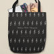 Ein schwarz-weißes Muster von Treble-Klappen überragt die gesamte Oberfläche der music_bag, mit eigenem Namen darauf