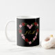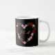 Gönnen Sie sich die dramatische Eleganz unseres 'Romantic Rose' Black Edition Mugs. Mit einem auffallenden herzförmigen Kranz aus tiefroten und sanften rosa Rosen vor einem kühnen schwarzen Hintergrund schafft dieses Design eine luxuriöse und stimmungsvolle botanische Ästhetik.