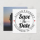 Schwarze Typografie und Foto der roten Herzen auf Save The Date