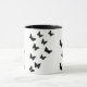schwarze u. weiße stilvolle Tasse mit Fliegenschmetterlingen