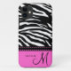 Elegantes schwarzes/weißes Zebra-Muster mit Hintergrund des personalisierten Monogramms und des heißen Rosas. Addieren Sie Ihren Namen und Initiale.