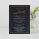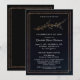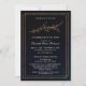 Dieses elegante Denkmal-Design-Celebration of life lädt zu einem goldenen, eleganten Bild von Ast, goldenem Rahmen und weißem Text ein. Die Rückseite der Einladungskarte ist schwarz mit abstraktem goldfarbenem Rahmen.