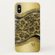 Schwarze und goldene Metallic-Look BlumenDamaskus Case-Mate iPhone Hülle