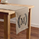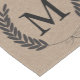Gerahmter Monogrammbuchstabe der noblen und rustikalen schwarzen Weizenlorbeer Ihres Wählens über einem Hintergrund-Tabellenläufer der rustikalen Landbraunleinwand gemusterten. Groß für täglichen Gebrauch! Geht mit vielen verschiedenen Dekorwahlen von Shabby Chic zu Bauernhaus!