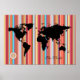 Schwarze Weltkarte + Farbstreifen Poster