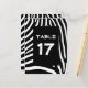 Zebra Streifen Muster in Schwarz-Weiß mit Platz für eine Tischnummer. Sie können das Wort "Tabelle" anpassen und löschen und die Zahl zentrieren.