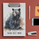 Fügen Sie Ihrer Arbeit oder Ihrem Zuhause-Büro eine Touch rustikalen Charmes hinzu, mit dieser speziellen Zwischenablage mit einem atemberaubenden schwarzen Bären in Aquarellfarbe. Es ist ideal, um Dokumente, Aufgabenlisten und Skizzen zu speichern, damit sich jede Aufgabe etwas mehr mit der Natur verbunden fühlt. Das einzigartige Design hat ein sanftes, handgemaltes Aussehen mit künstlerischen Farbspritzen. Sie können die Zwischenablage mit einem Namen, einer speziellen Nachricht oder einem Firmennamen personalisieren, um sie zu einem einzigartigen Accessoire zu machen. So könnte es beispielsweise mit "Die Müller", "Vaters Aufgabenliste" oder "Forstwirtschaftsabteilung" angepasst werden. Es ist ein großartiges Geschenk für jeden, der die Natur und die einzigartige Kunst schätzt.