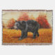 Ein niedlicher, schwarzer Bär, der durch ein Feld aus leuchtend fallendem Blattwerk spaziert.