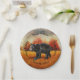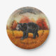 Ein niedlicher, schwarzer Bär, der durch ein Feld aus leuchtend fallendem Blattwerk spaziert.
