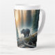 Dieses bezaubernde Bild zeigt einen majestätischen schwarzen Bären, der sich über einen gefallenen Baum hindurchschlängelt und von einer Kathedrale mit mächtigen Evergreens gerahmt ist. Während das goldene Licht des Sonnenaufgangs den Morgennebel durchbrochen, strahlt es ein weiches, ätherisches Glühen, das den Wald zum Leben erweckt.
