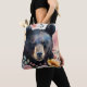 Dieser wilde Tiertotensack mit Aquarellkunst eines schwarzen Bären, umgeben von hellen, wunderschönen Blume. Der lächelnde Bär sieht etwas bedrohlich aus, im Gegensatz zur weichen, femininen Ästhetik des Kunstwerks. Oder sieht es vielleicht weniger bedrohlich aus? Abhängig von Ihrer Perspektive!