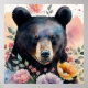 Dieses wilde Tier-Blumenposter zeigt Aquarellkunst eines schwarzen Bären, umgeben von hellen, schönen Blume. Der lächelnde Bär sieht etwas bedrohlich aus, im Gegensatz zur weichen, femininen Ästhetik des Kunstwerks. Oder sieht es vielleicht weniger bedrohlich aus? Abhängig von Ihrer Perspektive!