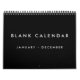 Schwarzer Blankkalender mit Feiertagen 12 Monate Kalender